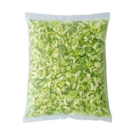 Puerro Cortado Congelado (1 kg) – Los puerros son una verdura de sabor suave y agradable, de uso culinario similar a la cebolla . Este producto se presenta en rodajas congeladas que conservan todo el sabor y las propiedades del vegetal fresco, eliminando por completo la necesidad de lavar y cortar .