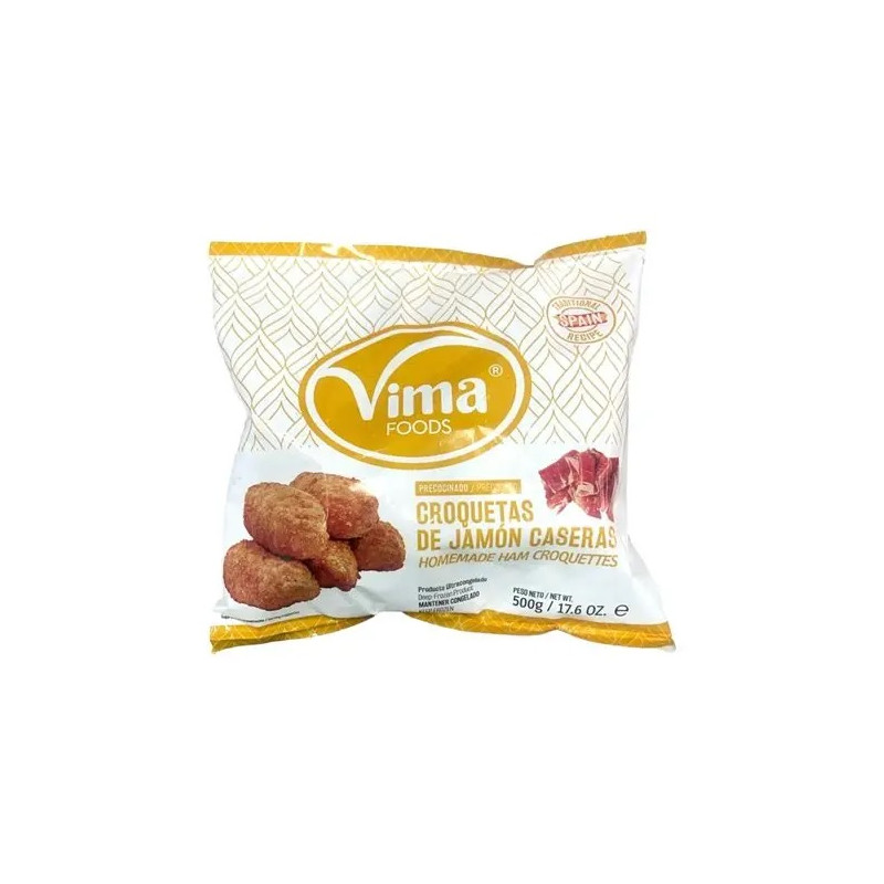 Croquetas de jamón Vima (500 g) – Las croquetas son una preparación gastronómica originaria de Francia, que se han incorporado a la tradición culinaria de muchos países como entrante, acompañamiento o plato principal . Las croquetas Vima están elaboradas con la receta tradicional que consigue un sabor inimitable .