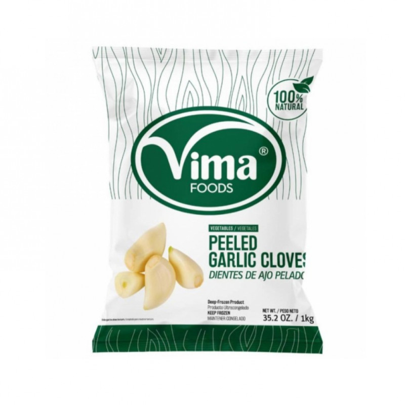 Dientes de Ajo Pelados Vima (1 kg) – Ajo blanco de alta calidad, pelado y ultracongelado en fresco para preservar todo su sabor y aroma naturales . Este producto está diseñado para facilitar la preparación de tus platos, eliminando por completo la necesidad de pelar y limpiar los ajos .