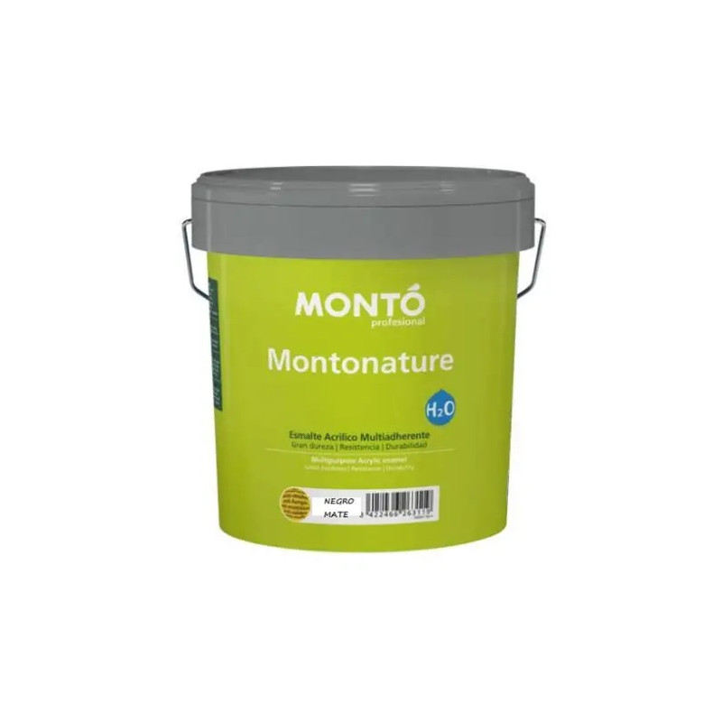 Esmalte Acrílico Montonature Satinado Negro (4 Litros) – Esmalte acrílico al agua de máxima calidad de la reconocida marca Montó Pinturas . Es un producto multiadherente que permite decorar y proteger una gran variedad de soportes con un mismo acabado satinado en color negro .
