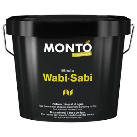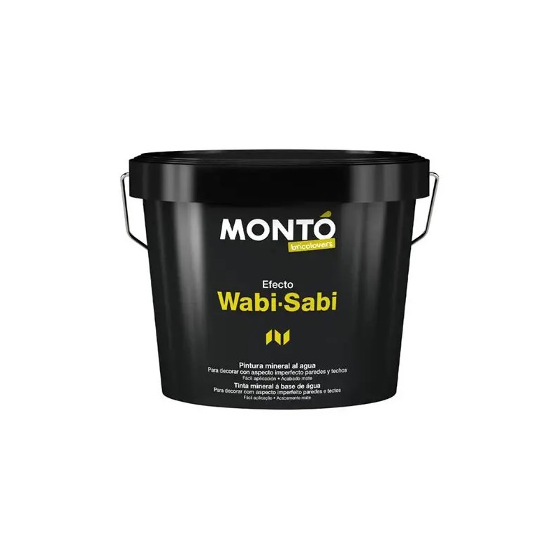 Pintura Efecto Wabi-Sabi Gris (5 kg) – Revestimiento mineral decorativo de Montó Bricolovers, inspirado en la filosofía japonesa Wabi-Sabi que busca la belleza en lo imperfecto . Esta pintura a la cal crea un acabado mate con textura única e irregular, haciendo que cada pared sea diferente .